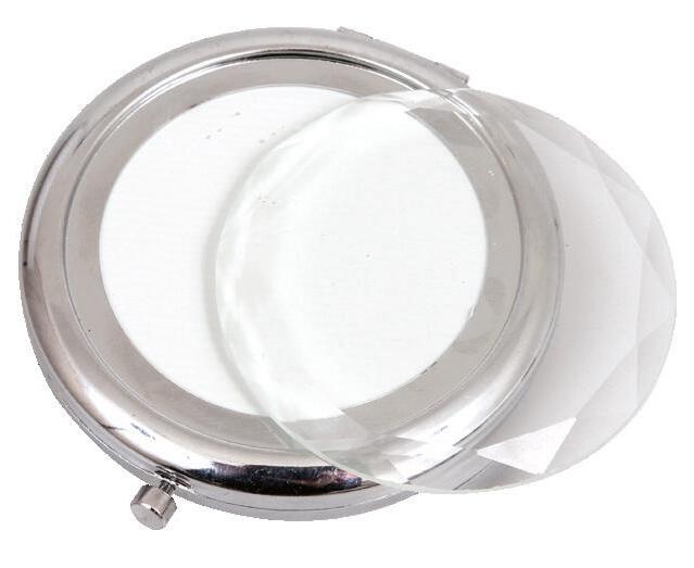 for you to create. Adhere your photo or design to the back of the glass panel, then secure the glass panel to the mirror case using CleverPatch™ PVA Glue or CleverPatch™ Gloss Finish (sold separately). Measures 7cm in diameter. Accessories not included.