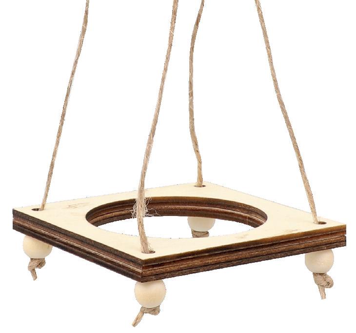 Includes wooden piece, beads and jute twine required to create 1 Hanging Pot Holder. Supplied in pieces for easy self-assembly. Plain for you to create. Assembly guide included. Perfect for use with our Terracotta or Porcelain Flowerpot (15317 and 14315 – sold separately). Measures approximately 8 x 8 x 45cm (including hanger) when assembled. 9mm plywood. Accessories not included.
