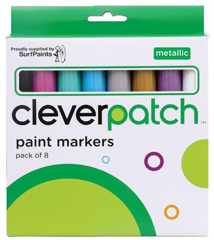 Low mess acrylic paint markers ideal for decorating most surfaces! Proudly supplied by SurfPaints. Provides great coverage with fade-resistant colours. Dries quickly. Perfect for most porous surfaces such as paper, canvas, ceramic and wood. Apply an acrylic varnish to seal your design on non-porous surfaces such as glass, porcelain or plastic. 4mm bullet tip. 8 assorted colours per pack. Guide for use included. Water-based. Non-toxic. White swatches shown on black paper.