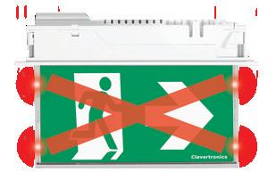 Where an exit is compromised by fire or an event, a Dynamic RED X sign can be used to display a red cross, alerting those evacuating to seek an alternative exit. Using a red cross through the sign has been demonstrated by FSEG research to be effective in conveying negative enforcement.