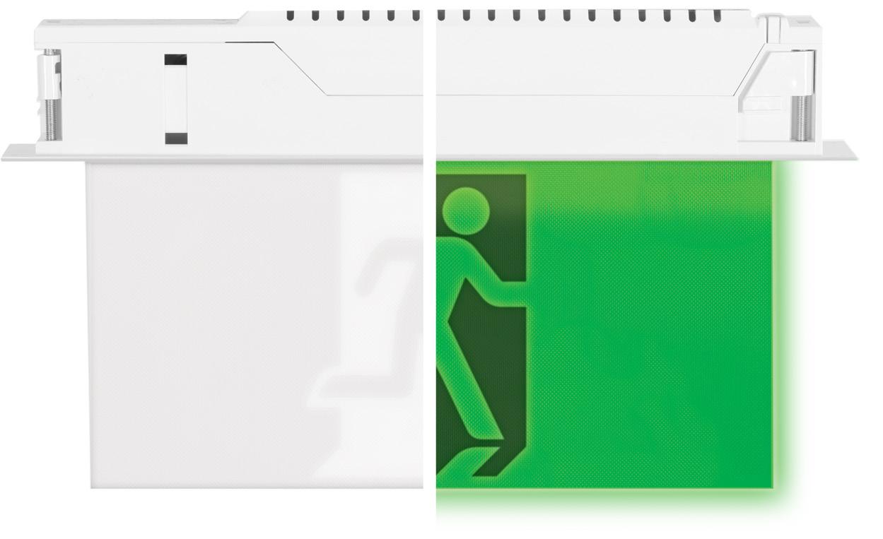 Blade style exit, displays red cross when activated to alter those evacuating to seek alternative exit. Also has Dynamic Green function IP20 -