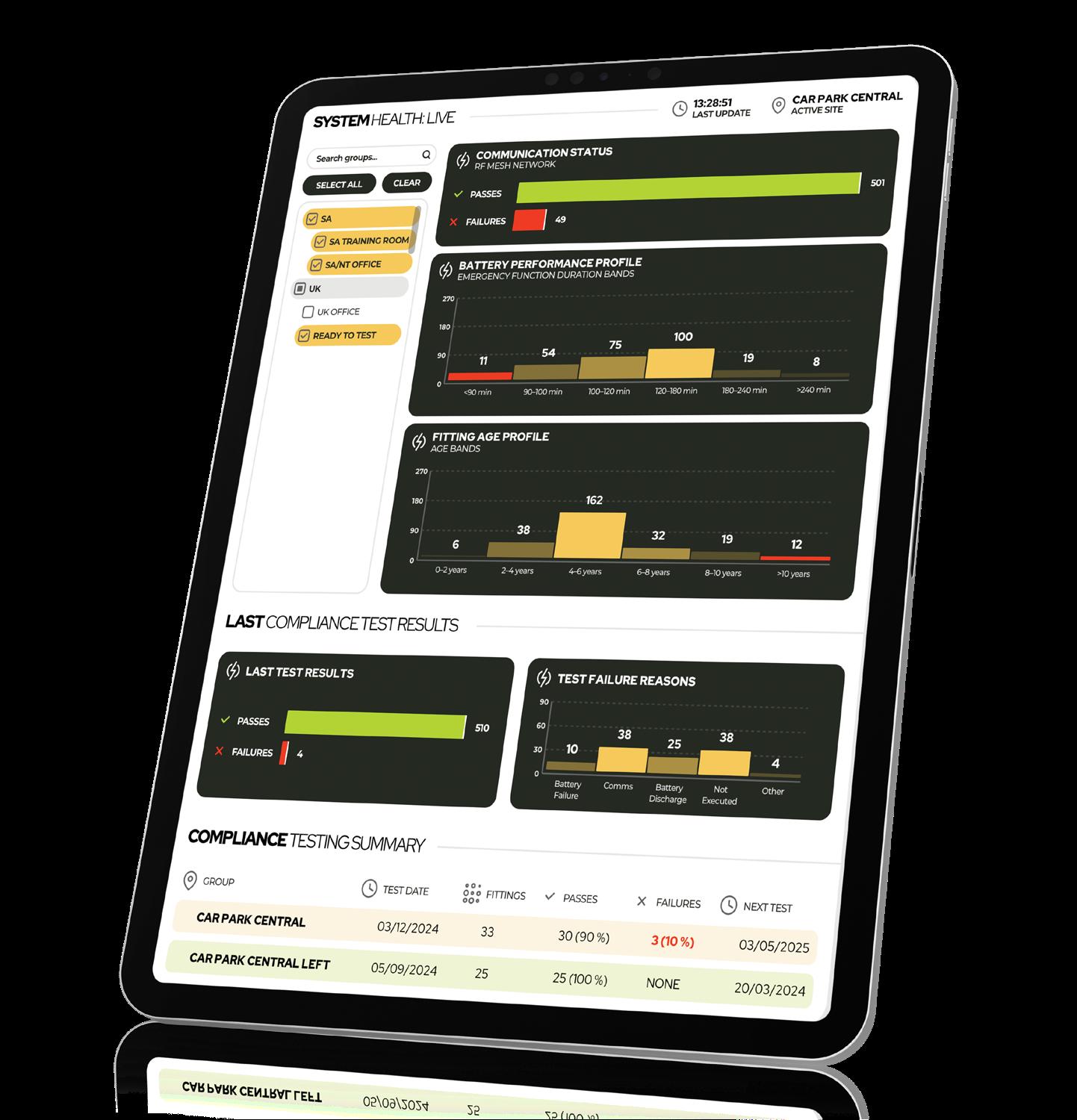 Organisations with multiple sites can manage all their emergency lighting from one central location.