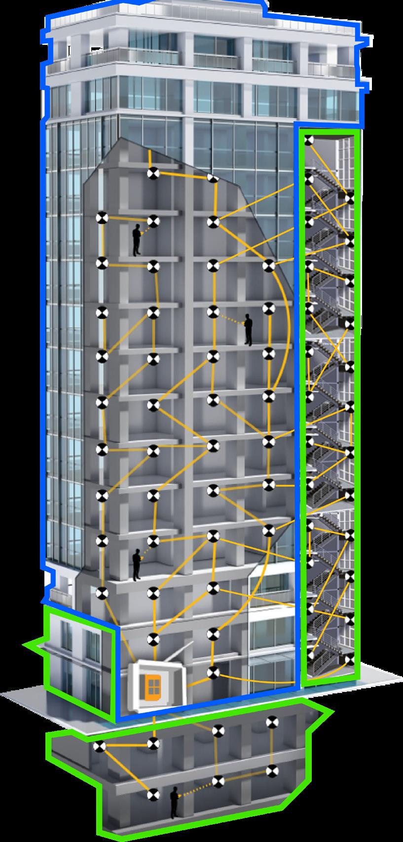 Self-configuring RF (DSM Meshing) network, significantly reducing site commissioning time, delivering a fully commissioned system faster and more efficiently