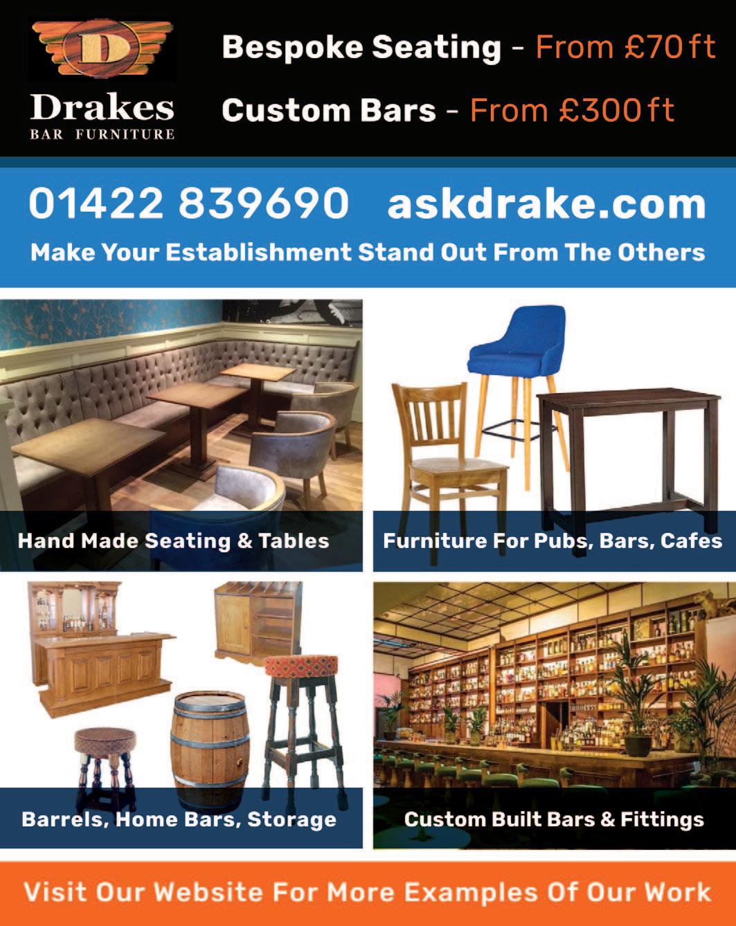 Got you interested? We are available for a chat Monday – Thursday: 9.00 am > 4.00 pm and Friday: 9.00 am > 12.00 pm on 01422 839 690. If you prefer, email us at sales@askdrake.com, and of course please visit our website www.askdrake.com to see some of our range and past work. We are also available on Facebook and Instagram, just search for Drakes Bar Furniture and give us a follow!