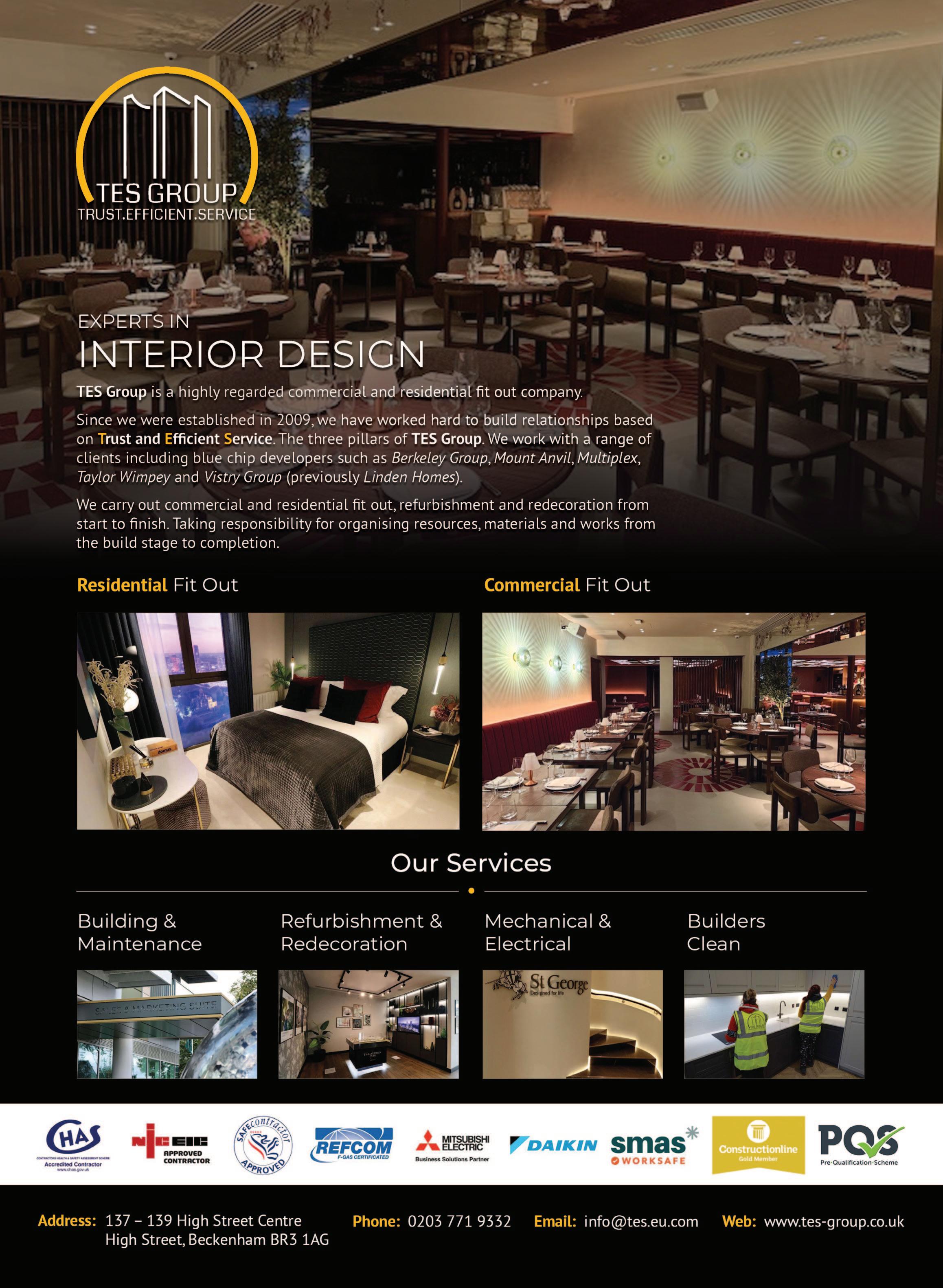 TES Group work with a range of clients including blue chip developers such as Berkeley Group, Mount Anvil, Multiplex, Taylor Wimpey, Vistry Group and private. TES Group specialises in the fit-out and commercial refurbishment of high-end space. They excel at working on bespoke projects which are both commercially and programme driven.