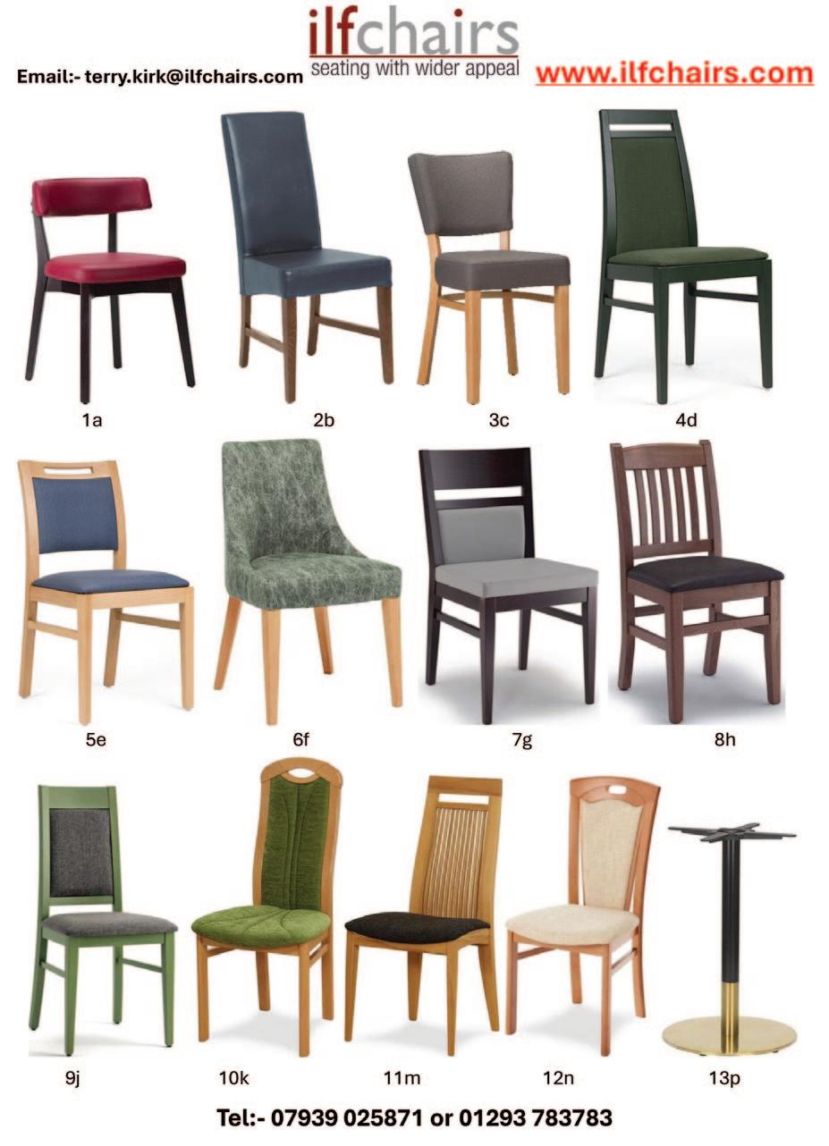 With the ongoing success of the ILF Chairs website, 2024 has seen an increase in their STOCK CHAIRS AND BARSTOOLS available in different Faux and Velvet upholstery and selection of frame colours, plus a 10 colour STOCK range of Egger laminated 25mm table tops in a selection of sizes and colour finishes, plus now also a range of STOCK Melamine tops. A full range of table bases in metal and stainless steel are also kept in STOCK. In addition, ILF now have a comprehensive range of STOCK outdoor seating and tables to suit all budgets, plus real wood table tops and real wood table bases for indoor use as well as a NEW full range of veneer back chairs made to order.