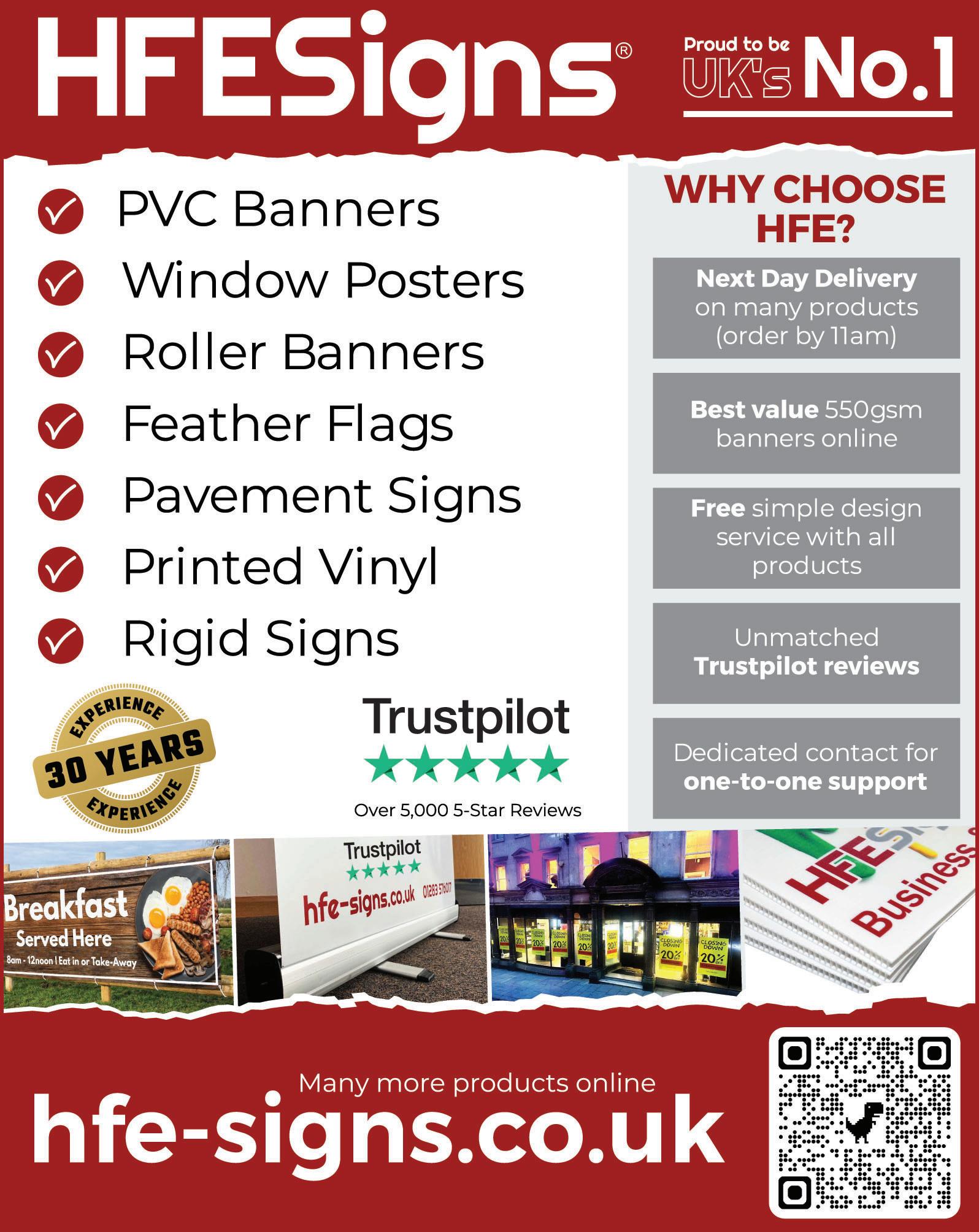 “Our customers tell us the same thing time and again,” explains HFE Signs. “Once the banner goes up, people start coming in specifically asking for food they didn’t realise was available.” Speed is crucial in hospitality marketing. Menus change, seasons shift and opportunities come and go quickly. HFE Signs offers next-day delivery on many food banner products, allowing pubs and hotels to react fast –whether launching a new breakfast offer, promoting a midweek food deal or capitalising on Sunday trade. “We know pubs and hotels can’t wait weeks for signage,” says HFE Signs. “That’s why fast turnaround is built into what we do.”
