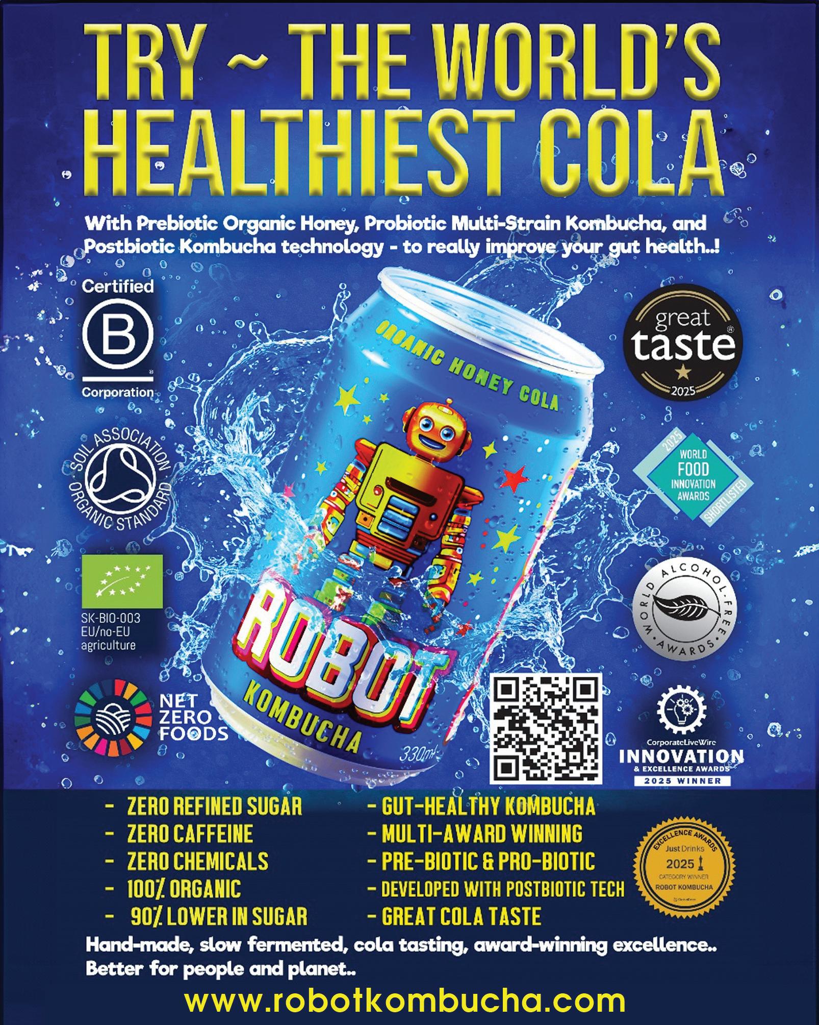 ROBOT Kombucha is a pioneering beverage in the growing kombucha market which addresses the damage caused to the gut microbiome, at the same time, acknowledging that pesticides, ultra-processed foods, microplastics and chemicals have a profound effect on our health, where fermented foods and drink, can really help to restore the healthy gut bacteria.