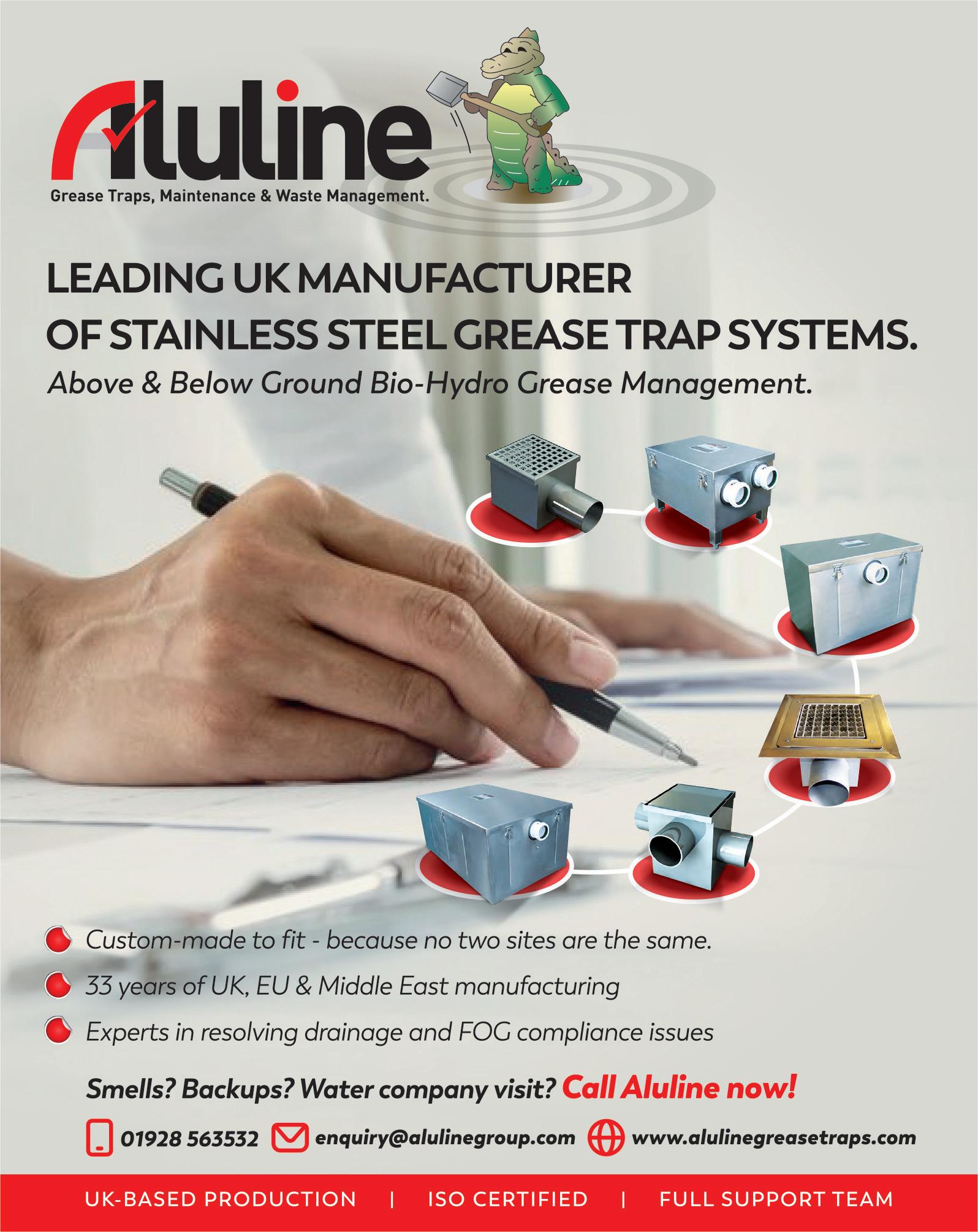 For 33 years, Aluline has solved the hygiene and compliance challenges that “automatic” boxes promise—but rarely deliver. We design, manufacture, install, and maintain stainlesssteel grease traps and biological dosing systems (no enzymes, no gimmicks) that keep commercial kitchens flowing, odour-free, and fully compliant across the UK. Every site is different. That’s why our engineers size and configure each trap to your actual volumes and fixtures, then pair it with biological dosing—naturally occurring bacteria that digest fats, oils, and grease (FOG) at source without pushing grease downstream. The result is less scraping, fewer callouts, and stable effluent quality that satisfies landlords, water companies, and environmental teams.