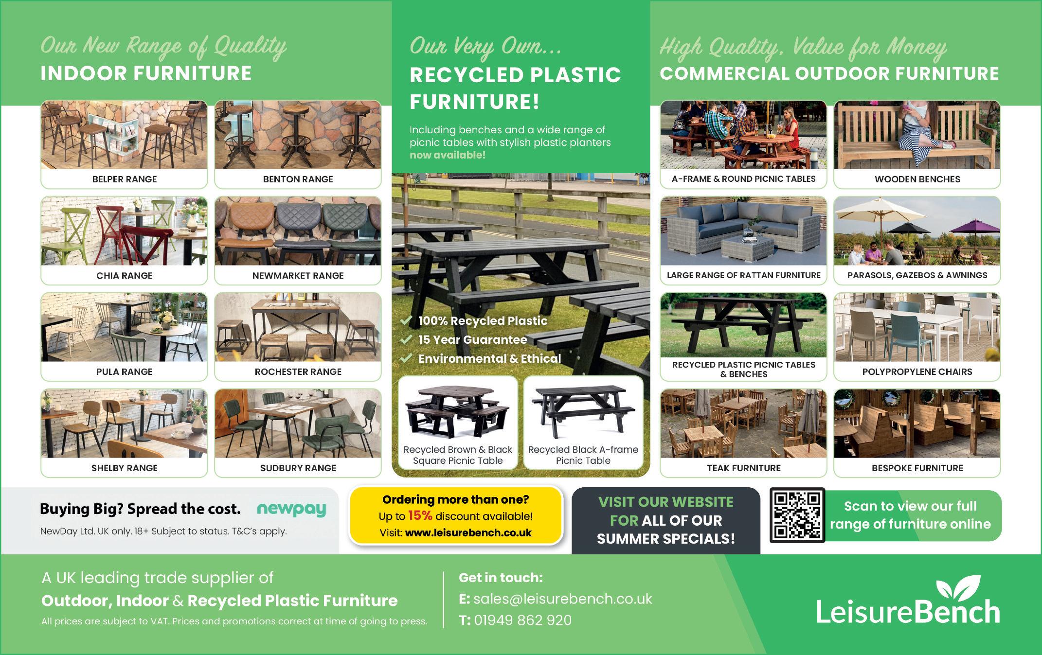 Most made to order indoor seat ing and indoor wooden table bases and tops can be finished to any cus tomer specification Outdoor items offer a variety of colours within the same product style