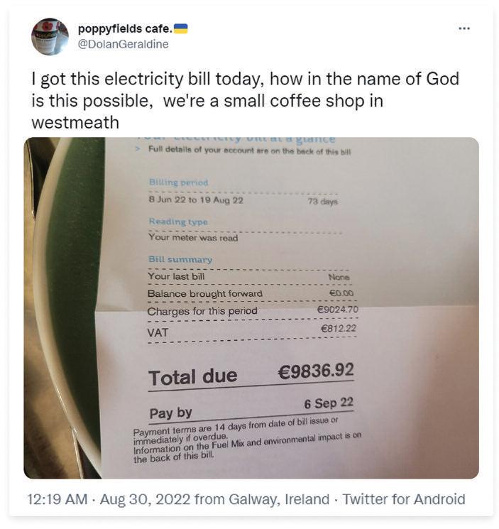 “With bills rising by up to 400%, the industr y will be decimated with out a pandemic style response as the cost of living crisis is here and assistance is needed to protect business and jobs