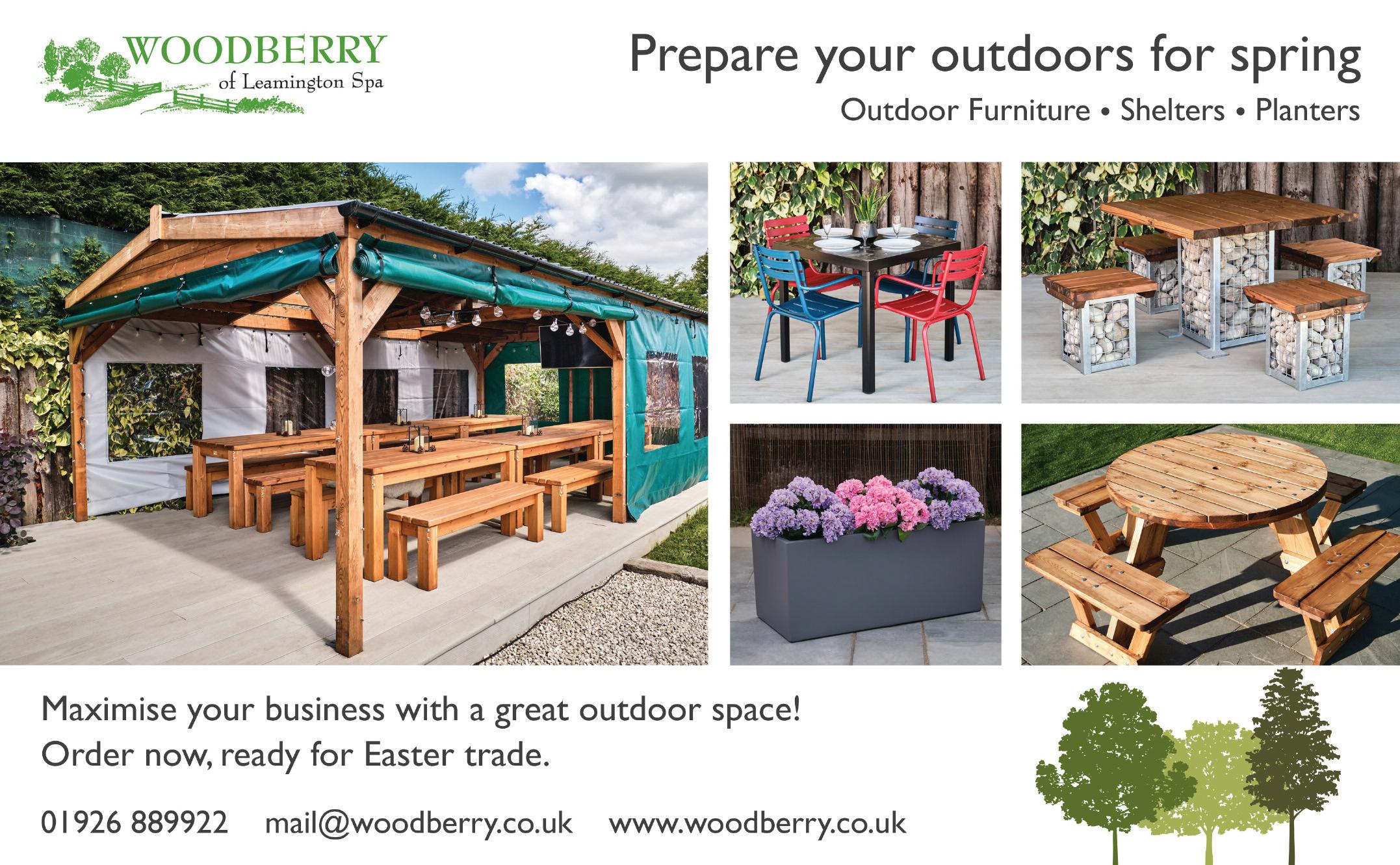 Woodberr y are outdoor furniture and shelter specialists for the hospitality trade Give Woodberr y ’ s friendly exper t team a call to chat through how you can improve outdoor trade 01926 889922