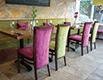 The bespoke designed carpet influenced by the flowing Bybrook that runs through the hotels grounds, provides a soft aesthetic for the main restaurant and continues to “flow” across the room and into the adjacent Brook Room Natural oak tables with dark timber & aged bronze pedestals are surrounded by chairs with a simple silhouette