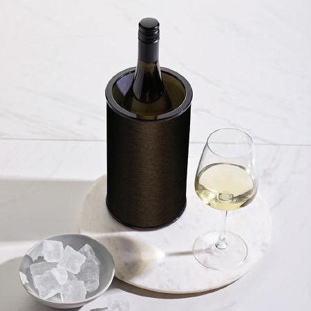 A new wine room star ts the journey having a rich décor intentionally contrasting the light environment of the restaurant Eurocave wine fridges sitting on a