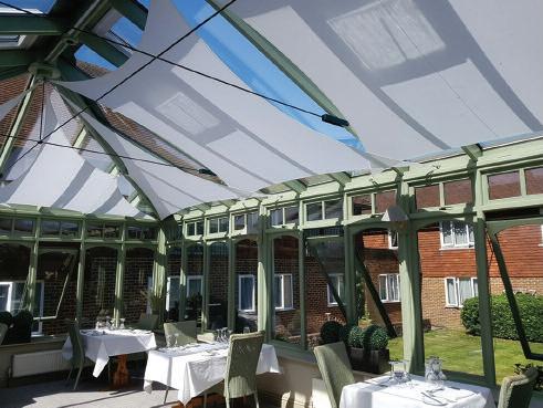 The adjacent Brook Room has been furnished with subtle differences to emphasise its own character yet remains an integral par t of the main dining room Plain textured cur tains are trimmed with the embroidered pattern that furnishes the bay in the restaurant and wall lights featuring an indulgent rocklike cr ystal have been chosen to balance the aesthetic of the featured stonework all providing the perfect place to dine ! For fur ther information visit www.trevillion.co.uk