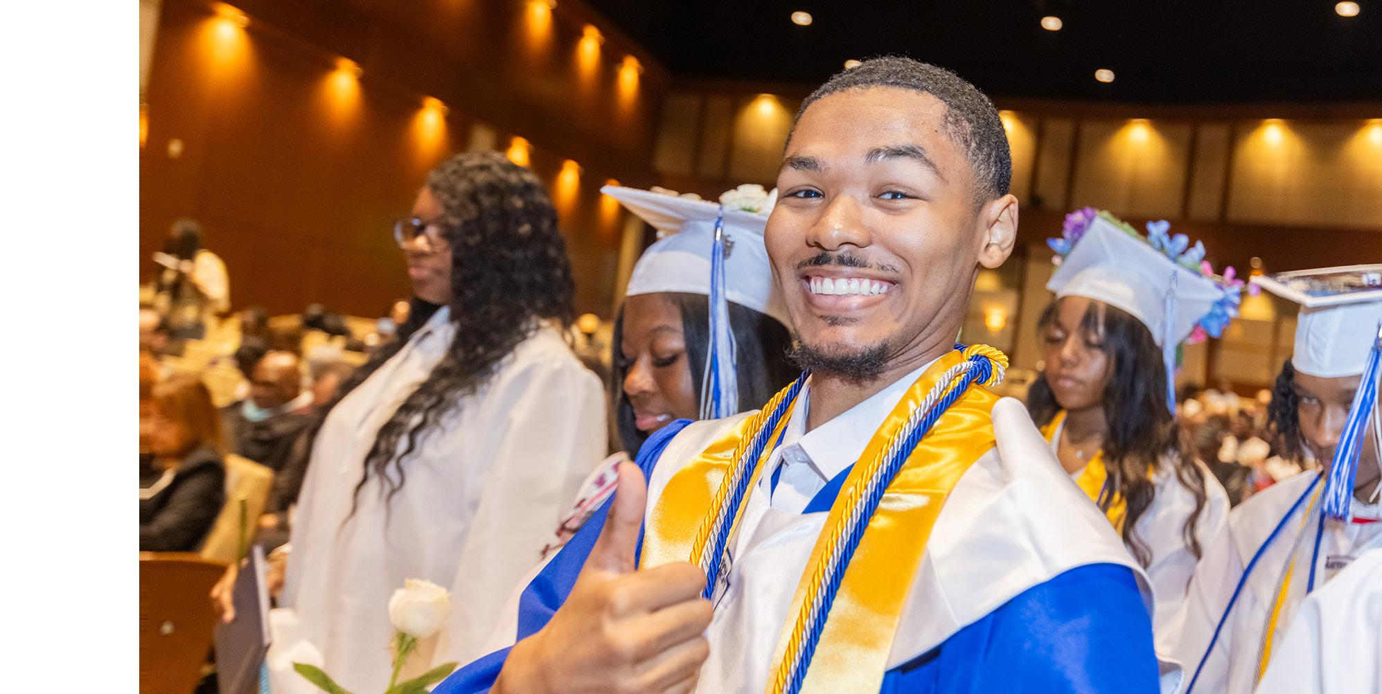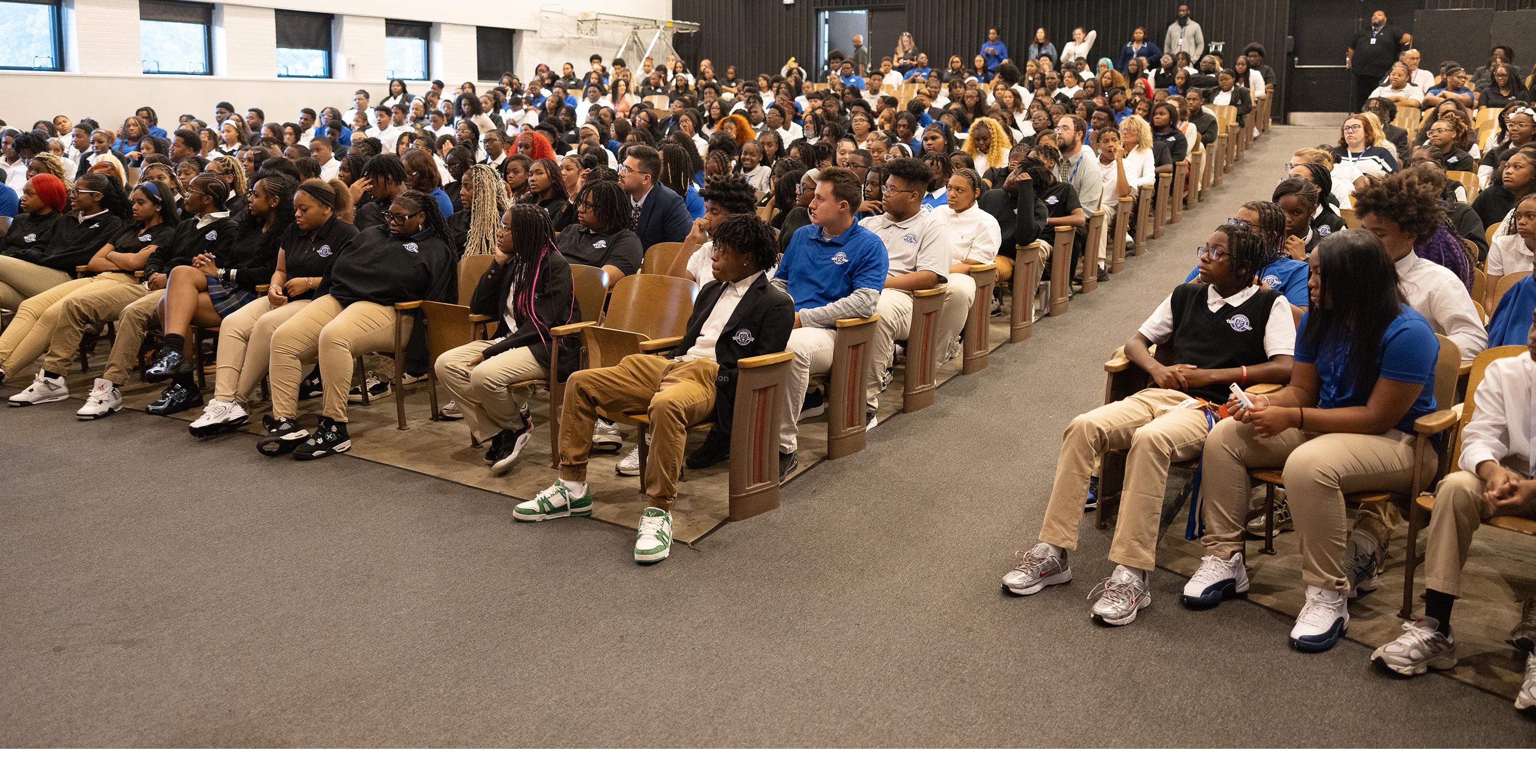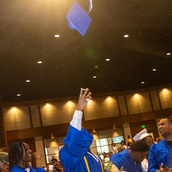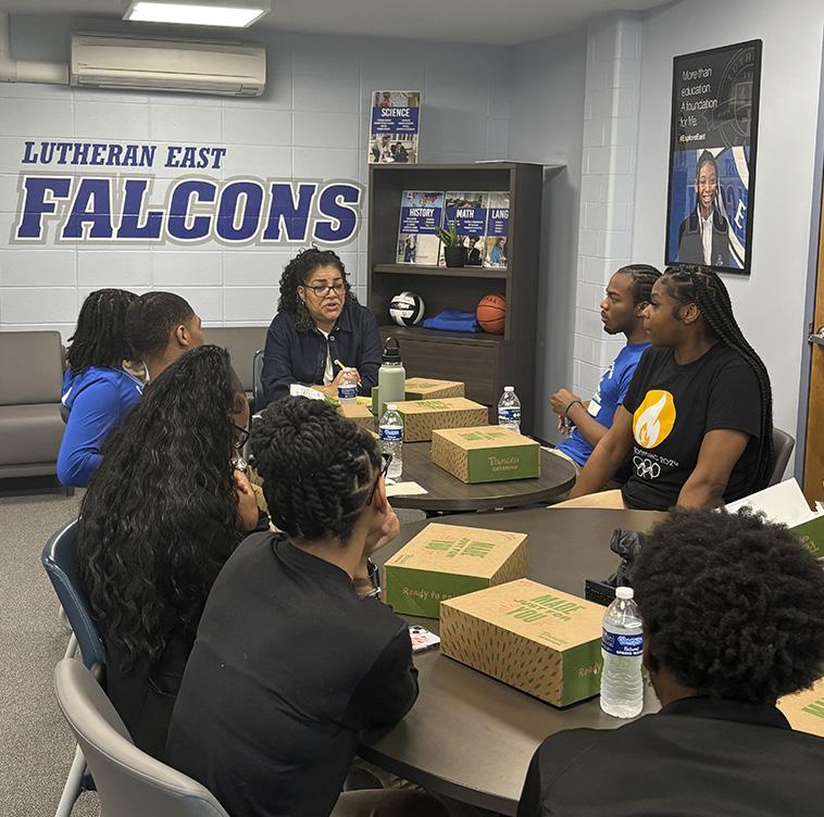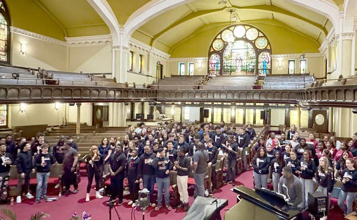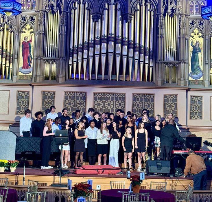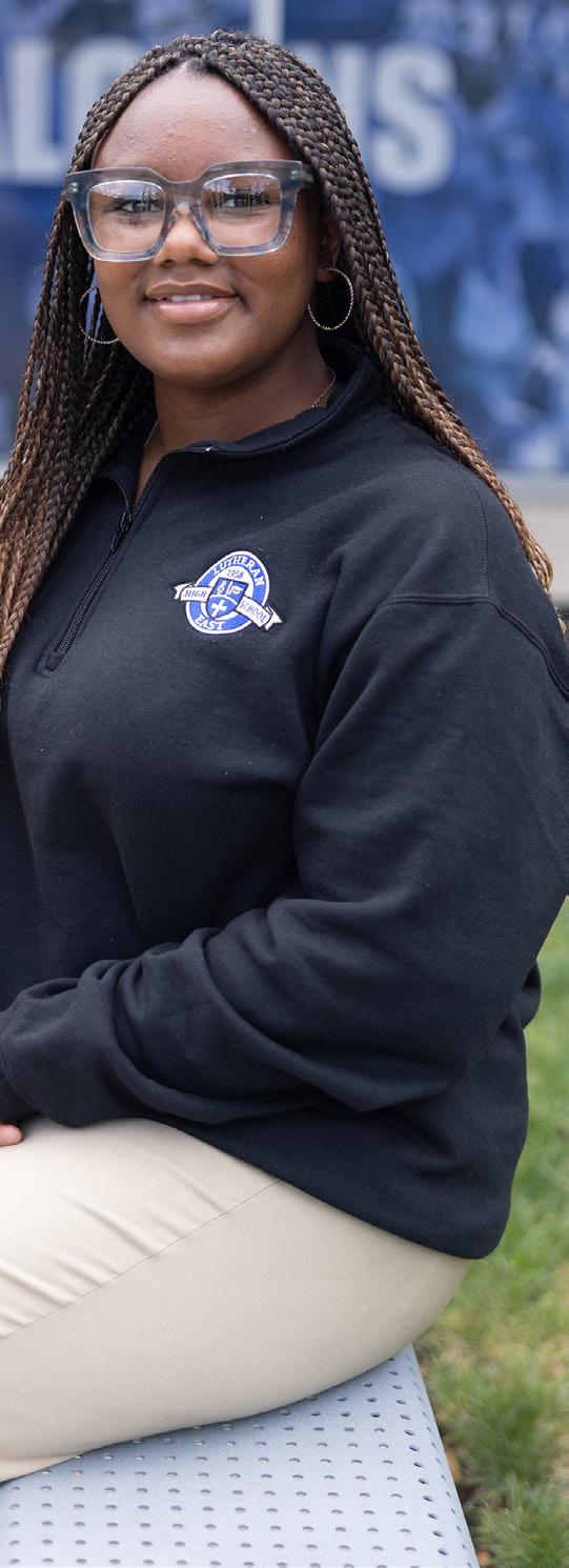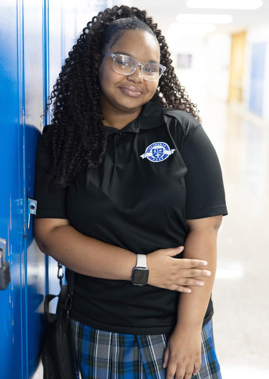 The Gospel Choir has become a calling card at Lutheran East, with over 150 students participating in Choir for the 202425 school year under the new leadership of Mr. Jayshawn Champion. The Lutheran East auditorium is the main venue for choir concerts, a home for Mr. Champion and the Lutheran East Gospel Choir. These concerts are not just an opportunity for Lutheran East students to exhibit their choral abilities but, more importantly, to share the good news of our saving grace through song to families and visitors alike.