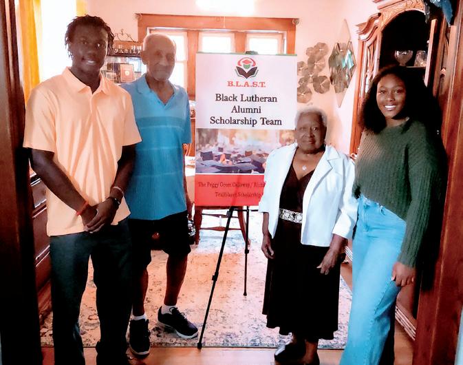 Dontrell Johnson and Mahelat Lee received the first B.L.A.S.T. (Black Lutheran Alumni Scholarship Team) Trailblazer Award Scholarship on June 19. Pictured are Dontrell and Mahelat with Peggy (Greer ’54) Calloway and Richard J Ridley, Jr. ’56, who were the first two African American CLHS graduates and for who the Trailblazer Award is named after.
