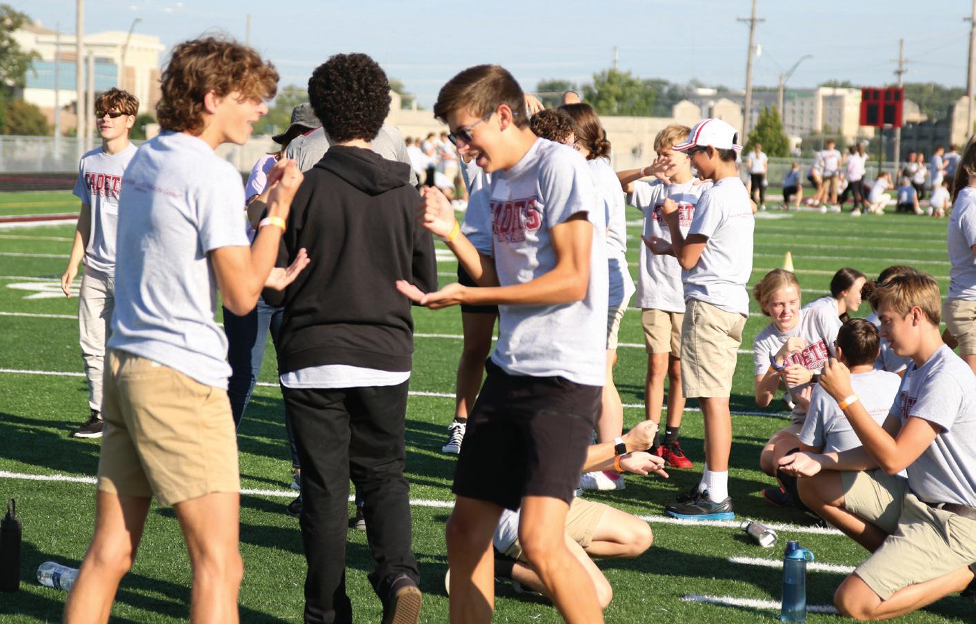 Left: Peer ministers greet freshmen as they enter for the first day of school.