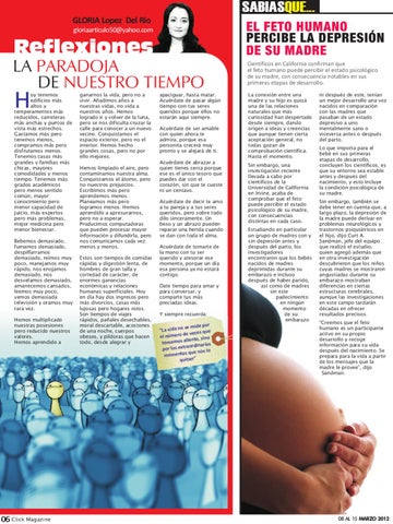 EL FETO HUMANO PERCIBE LA DEPRESIÓN DE SU MADRE Científicos en California confirman que el feto humano puede percibir el estado psicológico de su madre, con consecuencia notables en sus primeras etapas de desarrollo. La conexión entre una madre y su hijo es quizá una de las relaciones naturales que más curiosidad han despertado desde siempre, dando origen a ideas y creencias que aunque tienen cierta aceptación general, no todas gozan de comprobación científica. Hasta el momento. Sin embargo, una investigación reciente llevada a cabo por científicos de la Universidad de California en Irvine, acaba de comprobar que el feto puede percibir el estado psicológico de su madre, con consecuencias distintas en cada caso. Estudiando en particular un grupo de madres con y sin depresión antes y después del parto, los investigadores encontraron que los bebés nacidos de madres deprimidas durante su embarazo e incluso después de haber parido, así como de madres sin este padecimiento en ningún momento de su embarazo