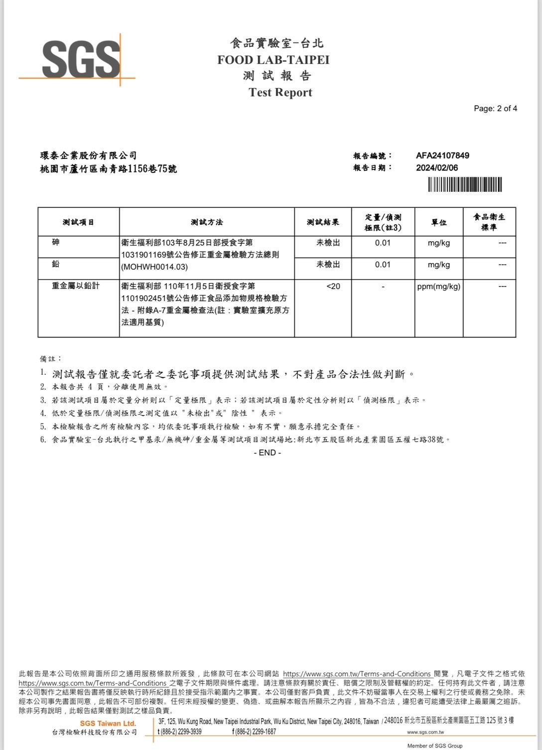 【註*】:為環境存在的微量元素,屬於自然現象,檢測結果低於食品衛生管理法食米重金屬限量標準, 品質安全無虞。