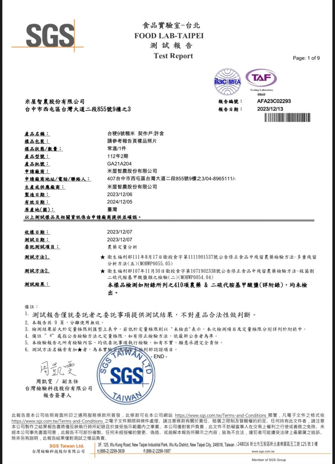 【註*】:為水稻推薦用藥用於防治作業, 檢測結果為合格 (低於食品衛生管理法農藥殘留容許標準),品質安全無虞。