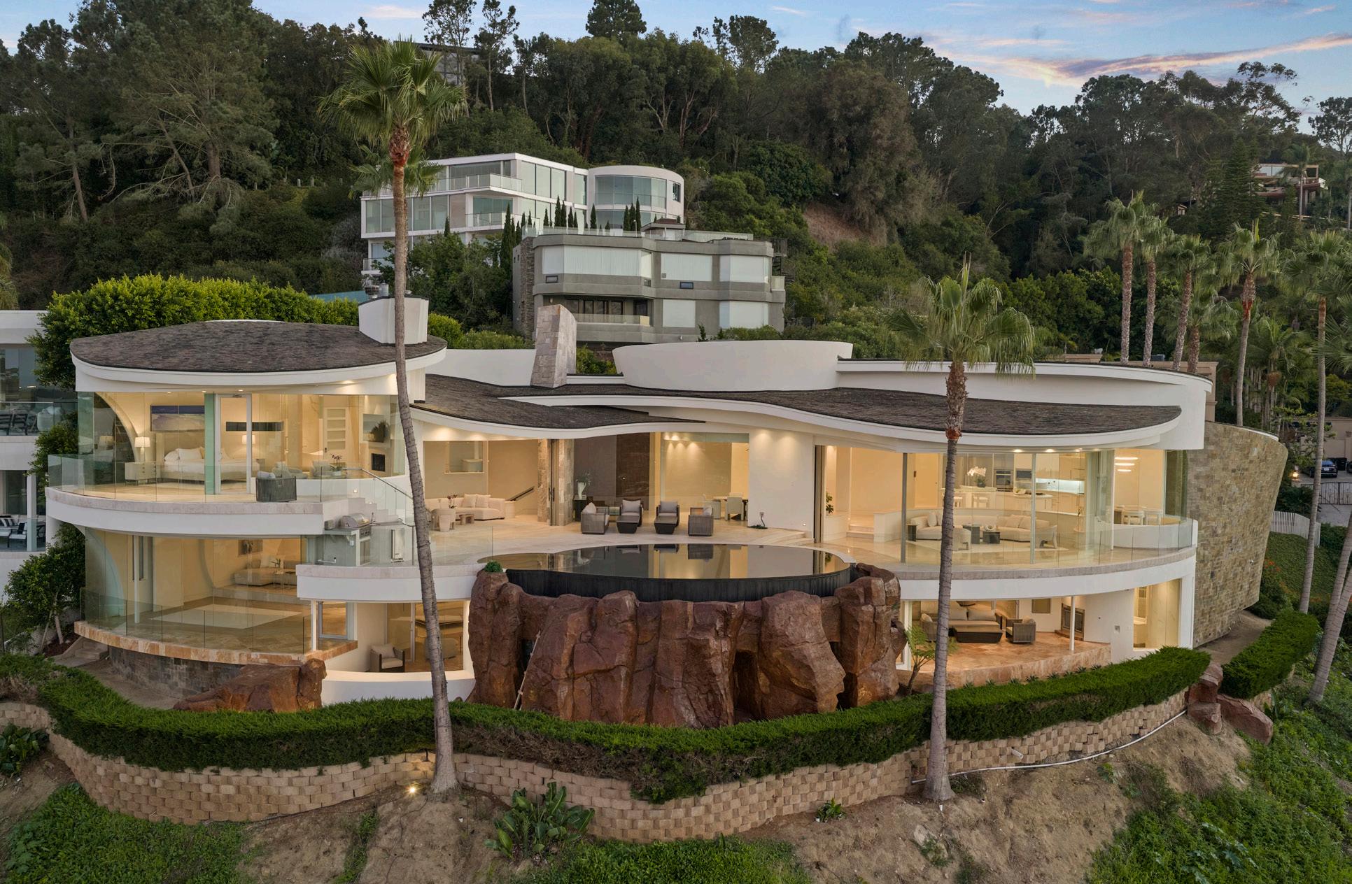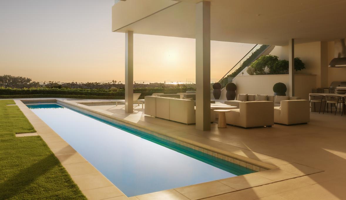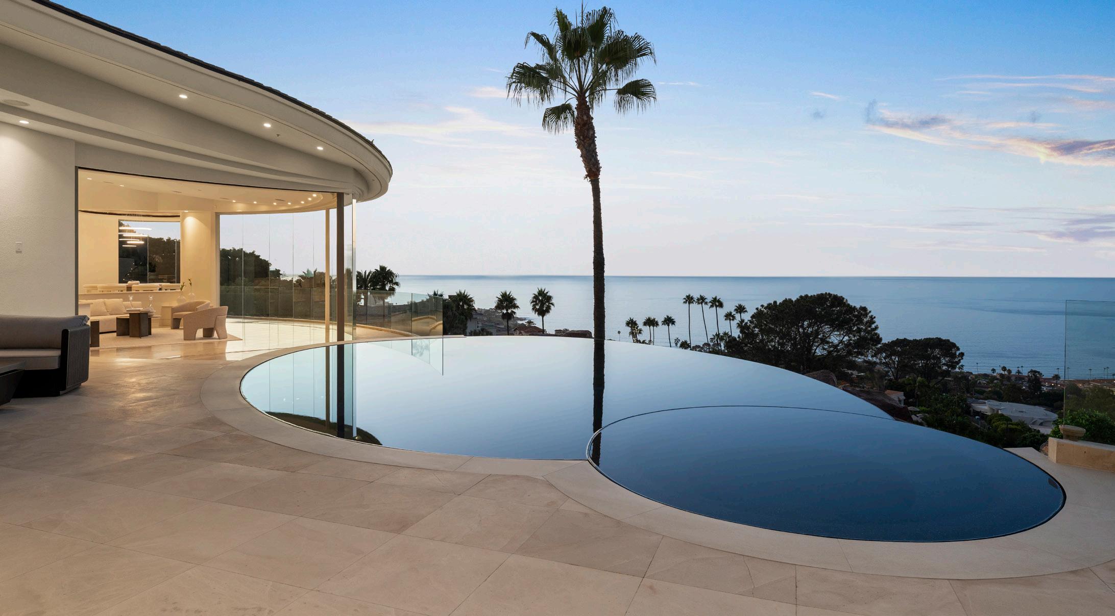 and ceramic tiles. Nearly every room showcases spectacular front-row ocean vistas, complemented by an expansive west-facing pool and spacious entertaining deck perfect for gatherings. 7455HillsideDrive.com ■