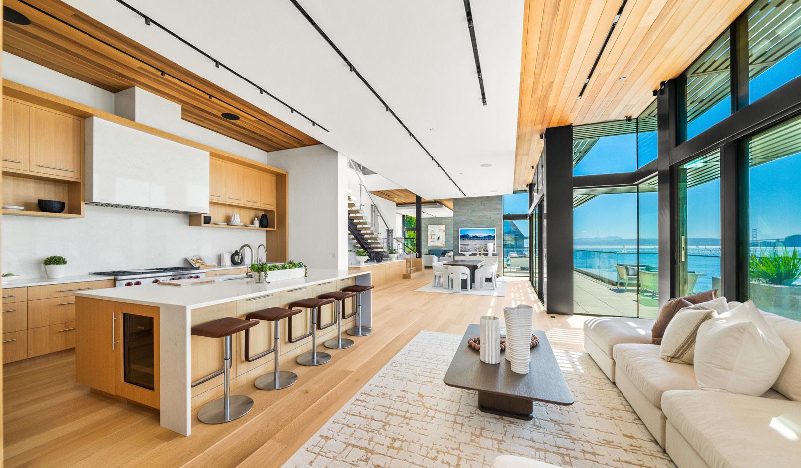 Imagine waking up to the glow of sunrise reflecting off the Golden Gate Bridge, spending afternoons watching sailboats glide past, and hosting unforgettable sunset gatherings on a terrace suspended over the bay. Whether you’re enjoying a cozy evening by the firepits, preparing a meal in the state-of-the-art chef’s kitchen, or sailing amid bay’s natural beauty, this residence is designed for those who demand the finest lifestyle. (The price includes a new boat dock subject to approval). www.46cliffroad.com ■
