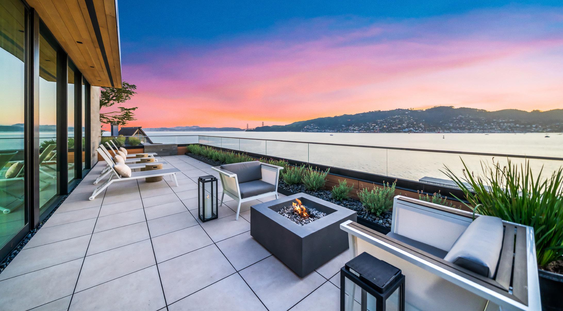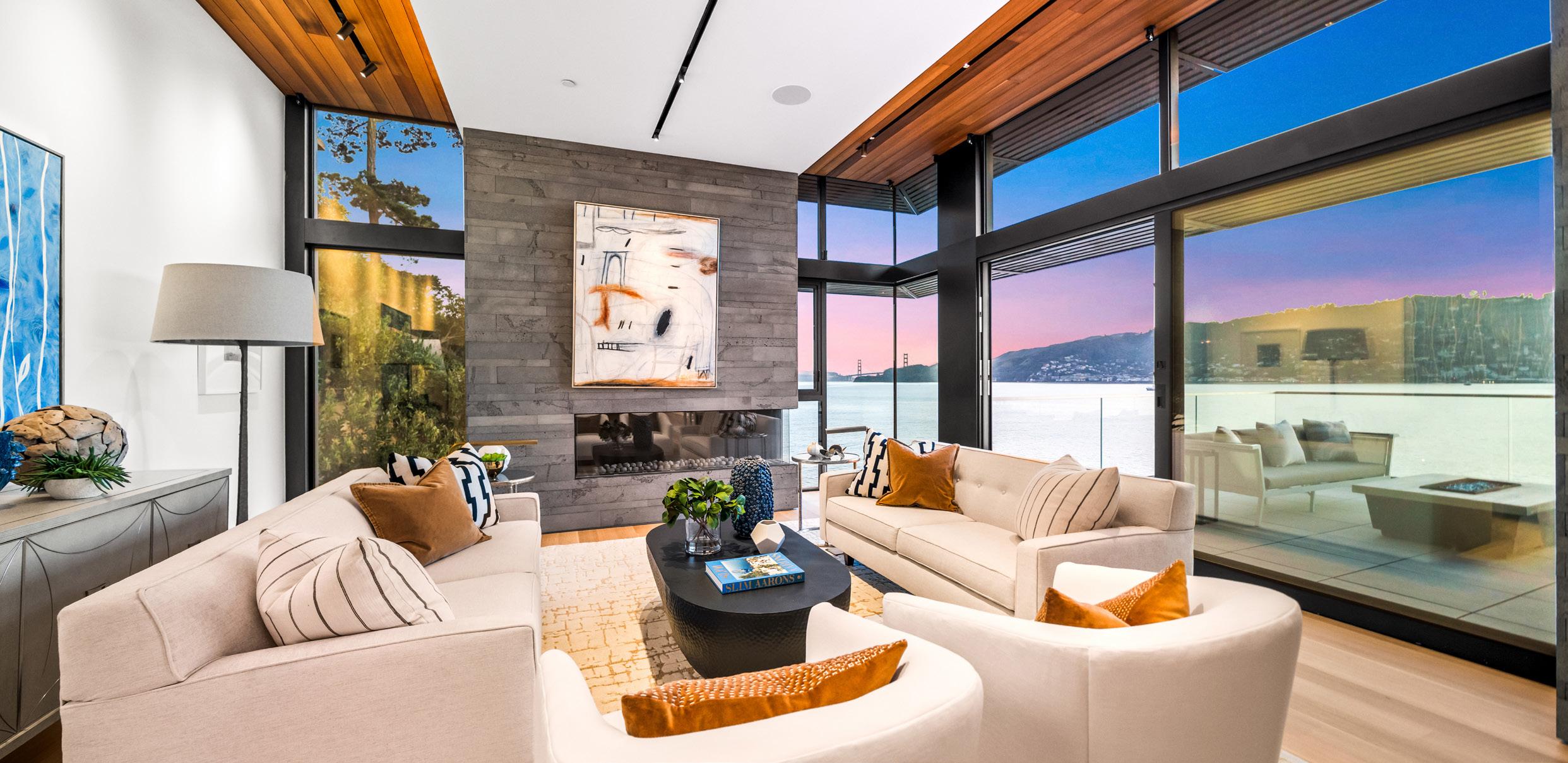 Every room in this stunning waterfront property offers Golden Gate views. The exclusive cliffside location feels like you’re floating over the bay. Inside, you’ll find grand interiors with 10-14-foot ceilings, a floor-to-ceiling fireplace, and a dramatic chef’s kitchen, all seamlessly flowing within an open-concept living space. The serene master suite provides unparalleled views, while the expansive waterfront terrace features an outdoor kitchen with stainless steel appliances, three firepits, and lounge area perfect for relaxation. With seals swimming below, seagulls flying in formation, sailboats passing by, and the refreshing ocean breeze, this home provides coveted waterfront luxury. Additional amenities include a two-car garage and three off-street parking spaces.