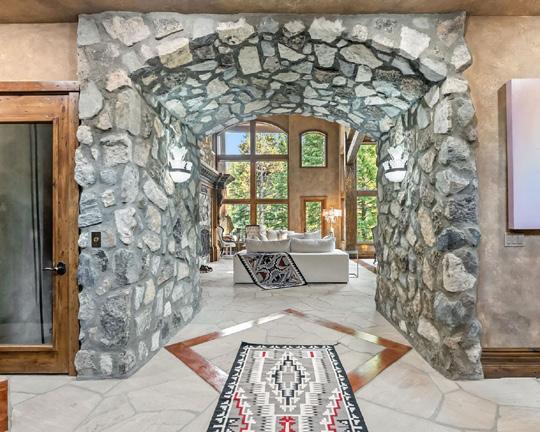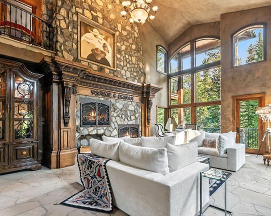 Resting along the banks of the Blue River and just moments from downtown Breckenridge, The Castle on the Blue is a one-of-a-kind Europeaninspired estate that seamlessly blends the elegance of Old-World architecture with the warmth of Western living. Completed in 2009, this architectural masterpiece offers an unmatched level of craftsmanship, design, and natural beauty. Step through one of the hand-carved 8-foot wooden doors into a home where every detail has been carefully curated—from locally hand-