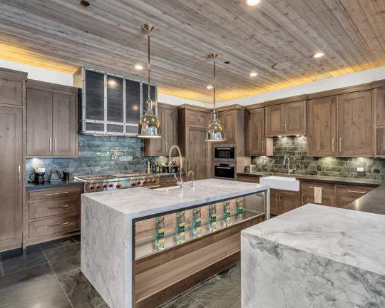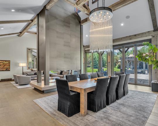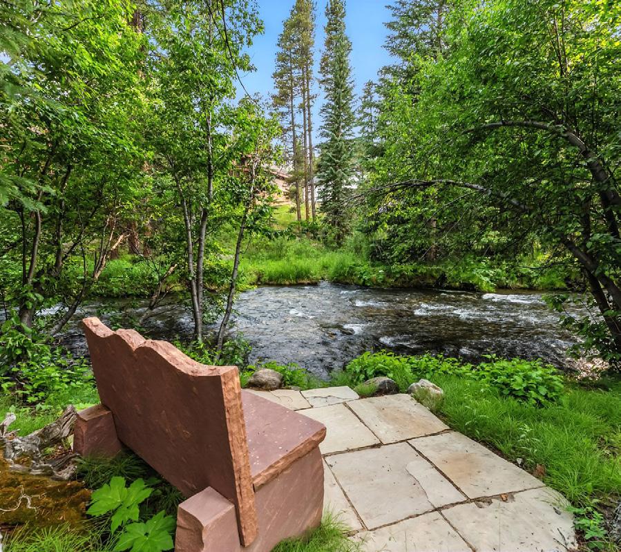 The award-winning, native-landscaped grounds surround the estate with sculpted gardens, winding stone paths, sculptures, and tranquil seating areas along the river. Every en-suite bedroom opens to its own private deck with views of the river, gardens, or surrounding mountains, while spa-inspired bathrooms feature copper soaking tubs, glowing onyx sinks, antique vanities, and hand-cut stone medallions. The expansive chef’s kitchen is a work of art, highlighted by a handcrafted La Cornue black and brass range, imported copper sinks, oversized Bosch refrigeration, and a built-in Miele espresso bar. A hearth room and great room with dual stone fireplaces flow seamlessly into the dining area, anchored by a 14-seat table overlooking the river. Whether you’re hosting guests in refined luxury, enjoying the tranquil sounds of the river, or exploring the storybook grounds, this is a rare opportunity to own one of Breckenridge’s most captivating and celebrated homes. ■