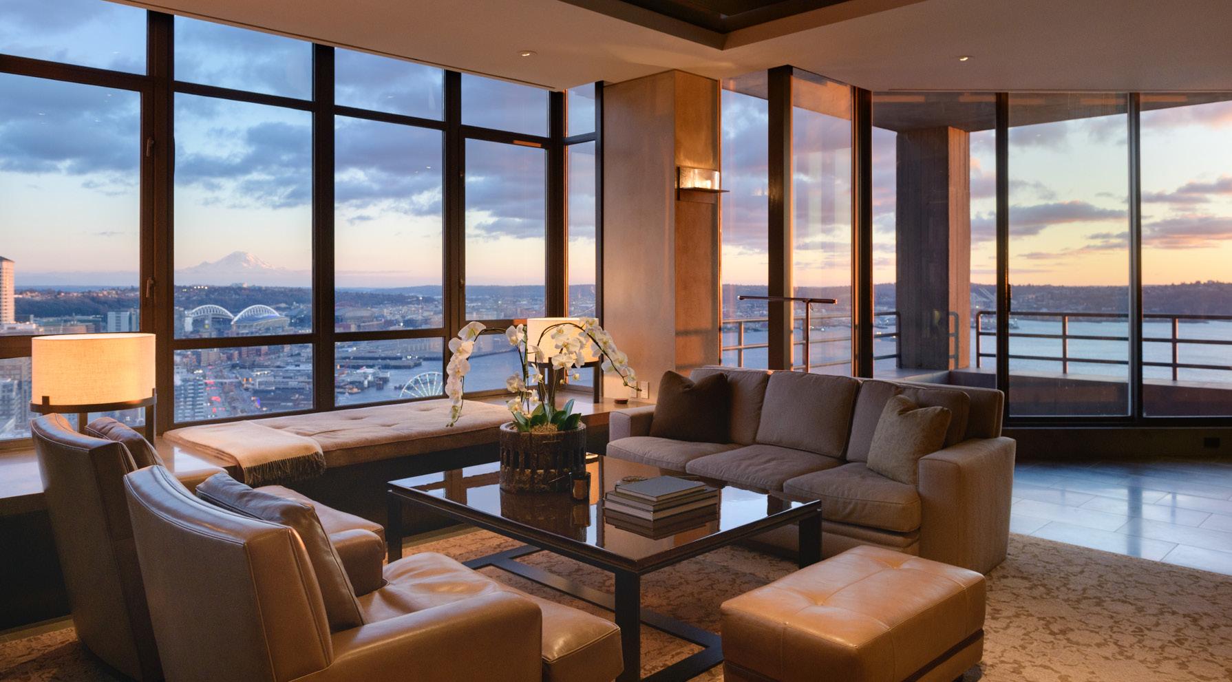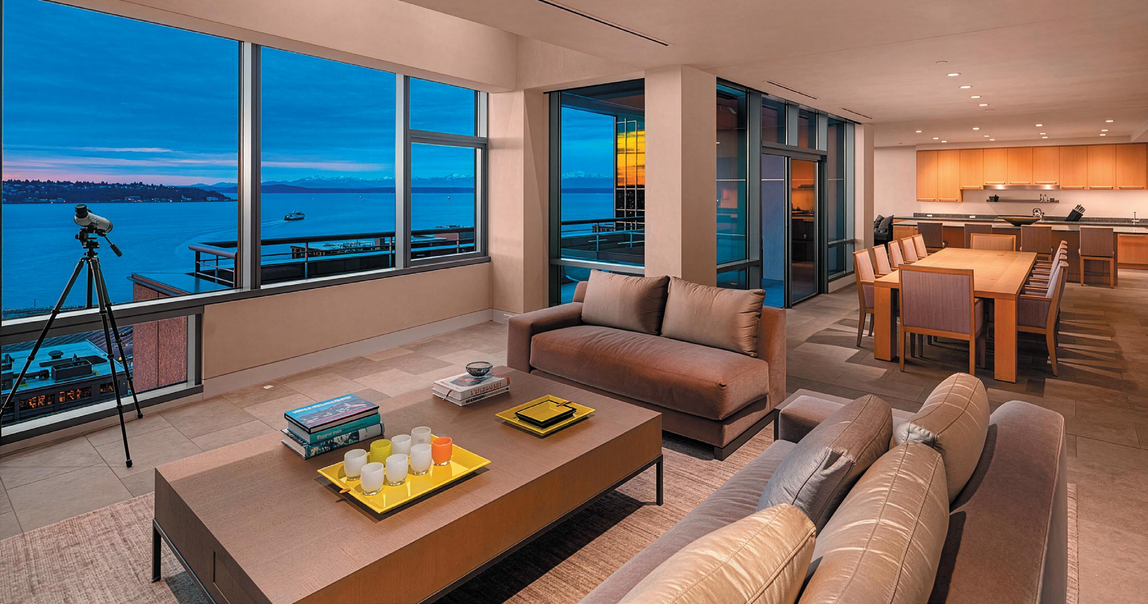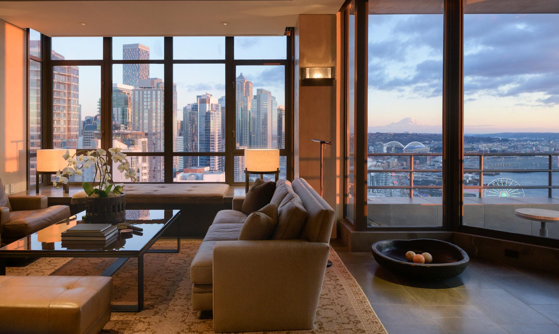 O ffered for the first time, this bespoke residence is considered “One of One”. Offering jaw-dropping views & a masterful renovation by Seattlebased and internationally renowned interior designer Terry Hunziker. A brilliant collaboration between owner & designer created an arrestingly beautiful yet understated interior. Hunziker’s signature aesthetic of timeless design & highly detailed interiors is magnificently showcased in this iconic Seattle Penthouse.