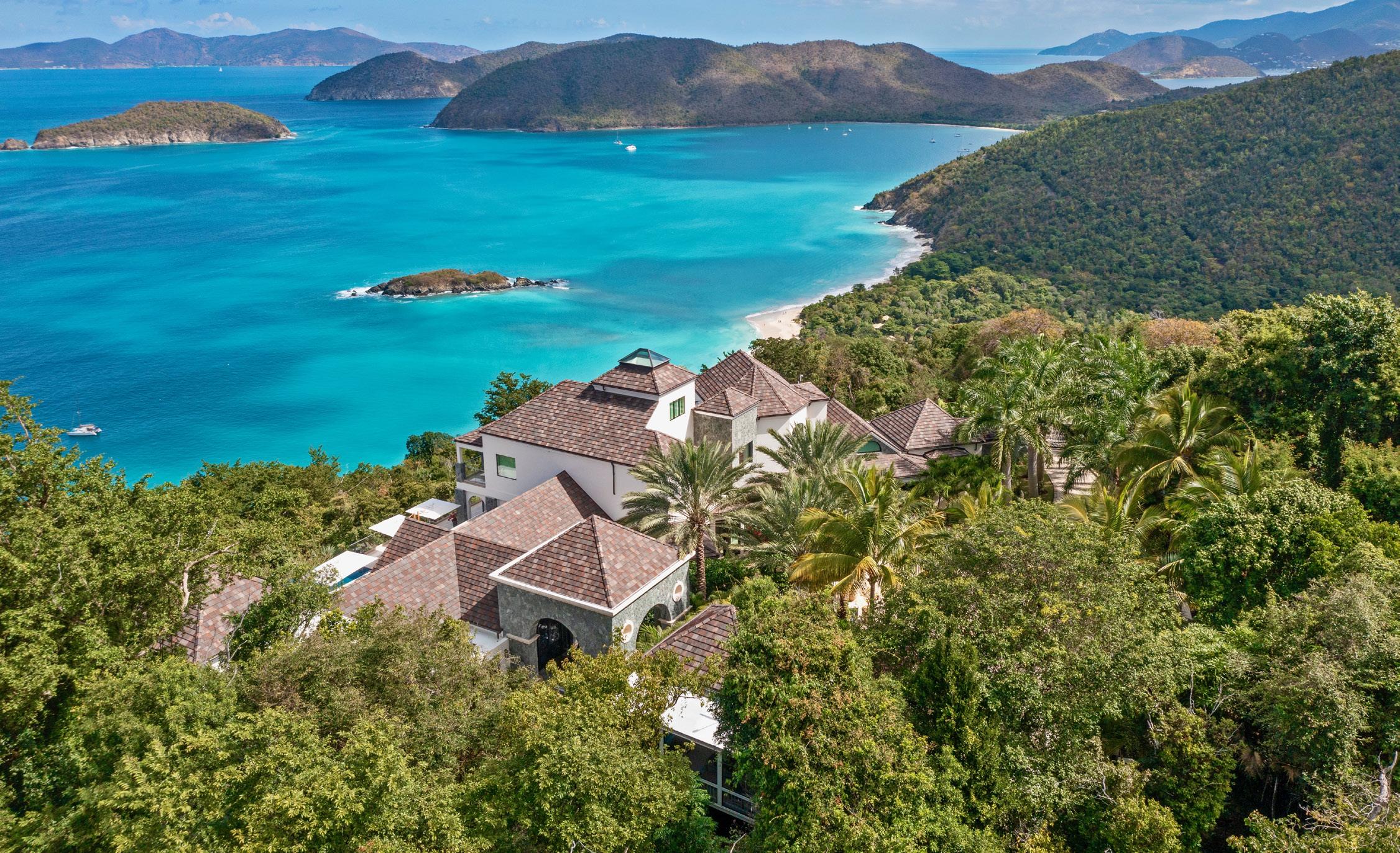 vistas of lush hillsides, turquoise waters, and distant islands—all just minutes away from the island’s famed north shore beaches and quaint village of Cruz Bay.