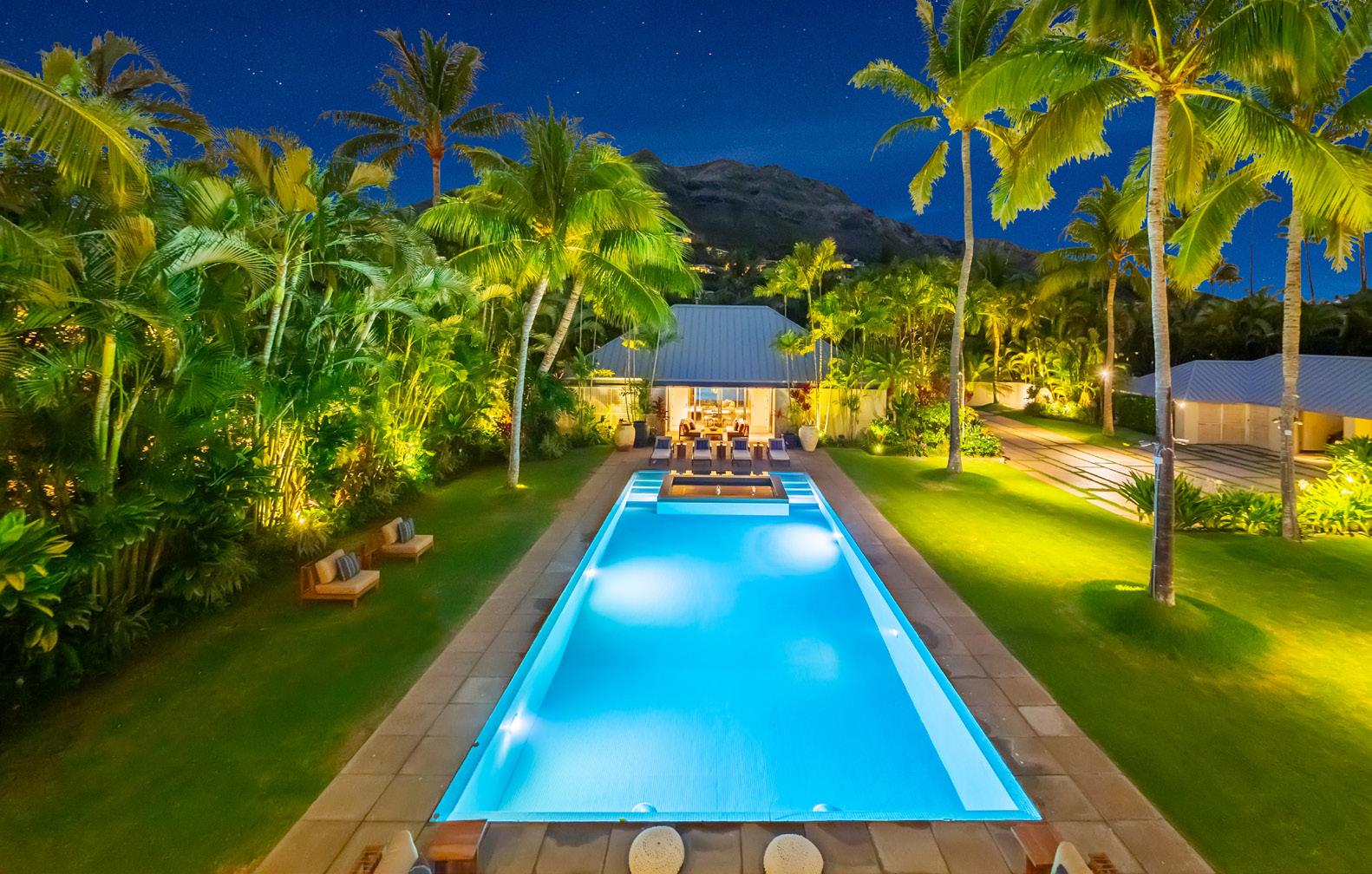 he Mokulua Estate is a breathtaking oceanfront sanctuary set within the prestigious Lanikai neighborhood. This exceptional property offers unobstructed views of the Mokulua Islands from nearly every vantage point. With over 150 linear feet of ocean frontage and a private gated entrance, the estate provides an ideal blend of seclusion, security, and harmony with its natural surroundings. Encompassing more than 10,000 square feet of refined indoor/outdoor living space, this state-of-the-art residence, designed by award winning architect Jim Jennings showcases dramatic ocean and mountain vistas throughout. A guest house and caretaker’s quarters ensure ample accommodation for family and guests. Direct ocean access from the backyard invites an active island lifestyle, from swimming and snorkeling to kayaking, surfing, fishing, or simply relaxing by the pool in your own tropical paradise. This is a rare, Once-In-A-Lifetime offering you won’t want to miss!