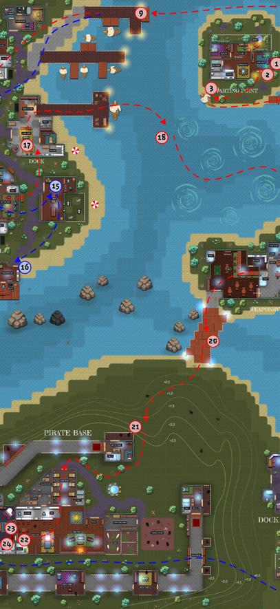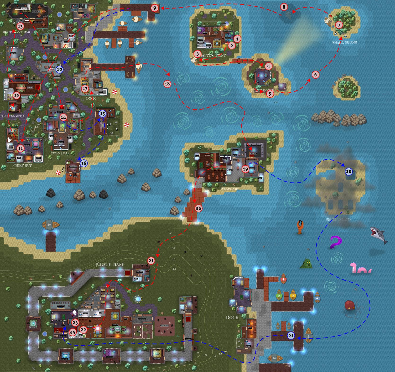 Optional routes offer extra content and choices. The experience draft includes blockages, guidance, and varied content for a well-rounded design. I themed the islands and ocean with creative touches like a ship-like restaurant and a skulllike town hall. The traversal experience provides player agency while maintaining controlled limits, using blockages and resources like hazards, lighting, and height differences to ensure diverse exploration options.