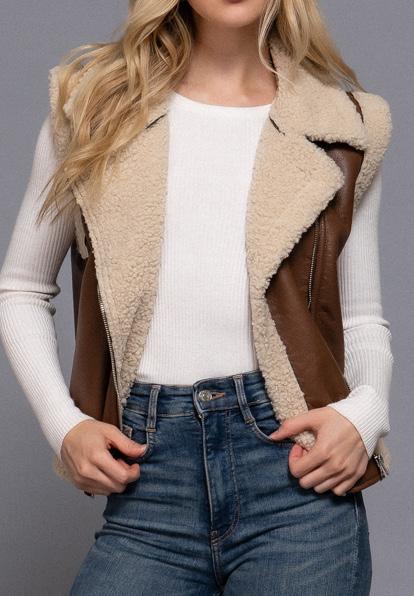 Faux Leather Sherpa Vest
