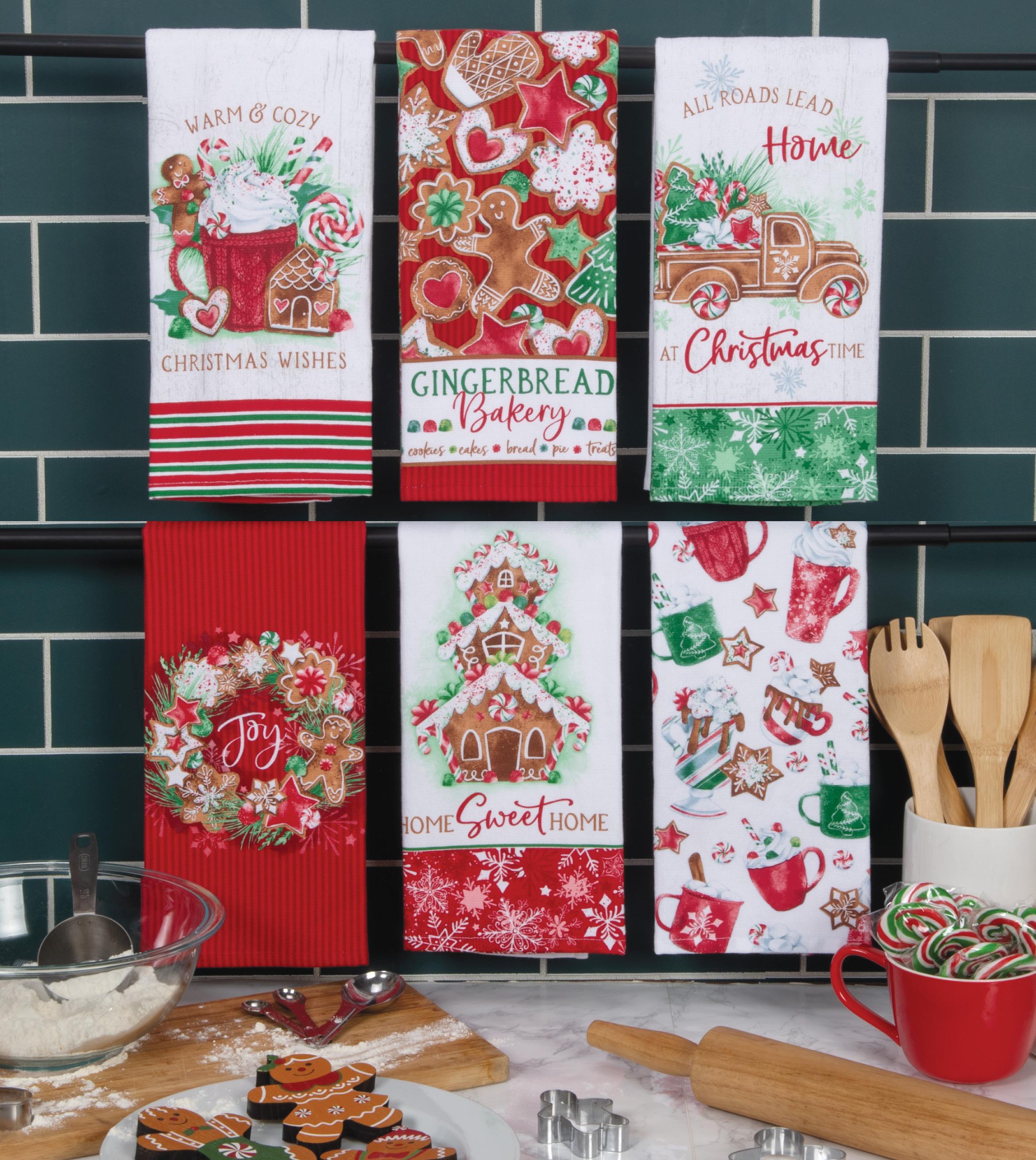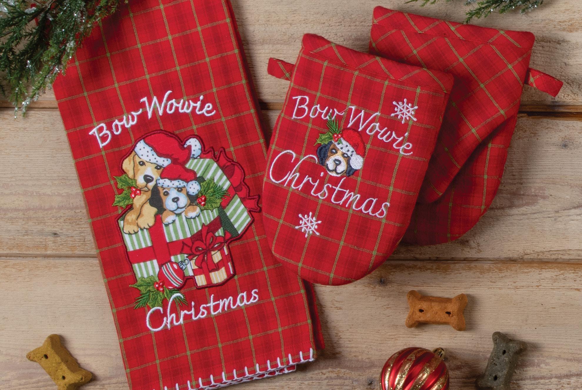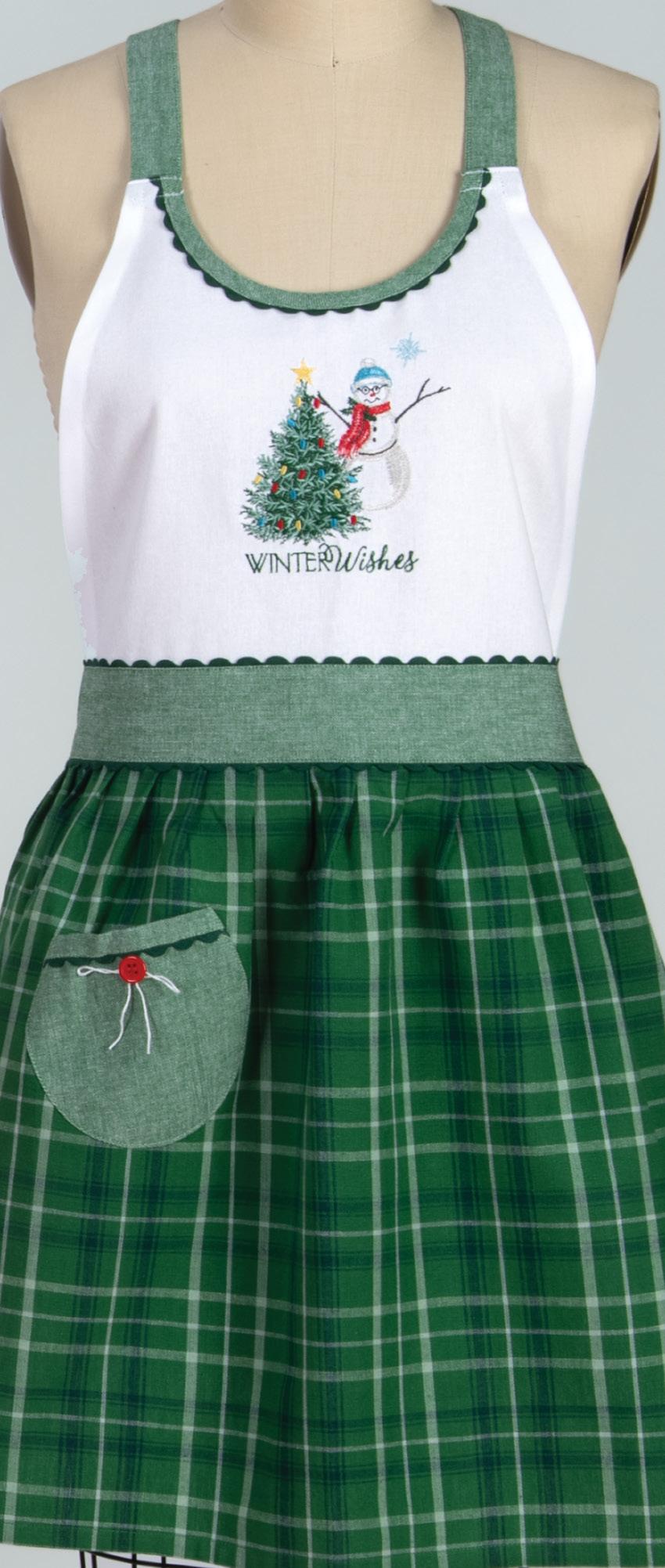 5.5 in x 7.5 in grabber mitt • 6.5 in x 8 in 2PK Swedish Fun Cloths • 26 in x 32 in chef apron with pocket 15 in x 20 in drying mat • 18 in x 28 in embr. tea towel