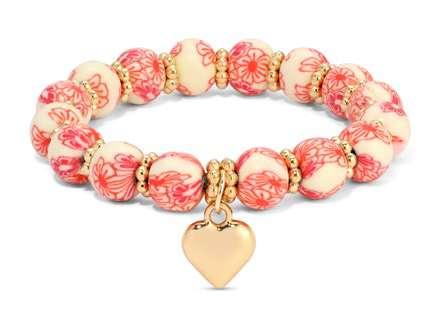 KidsClayBracelet BrightPinkFloralw/pinkheartcharm