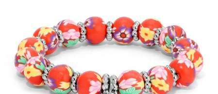 KidsClayBracelet RedFloralw/whiteheartlockcharm