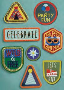 Pg 2: Iron-on patch on front of card is removable. Pg 3: Blank