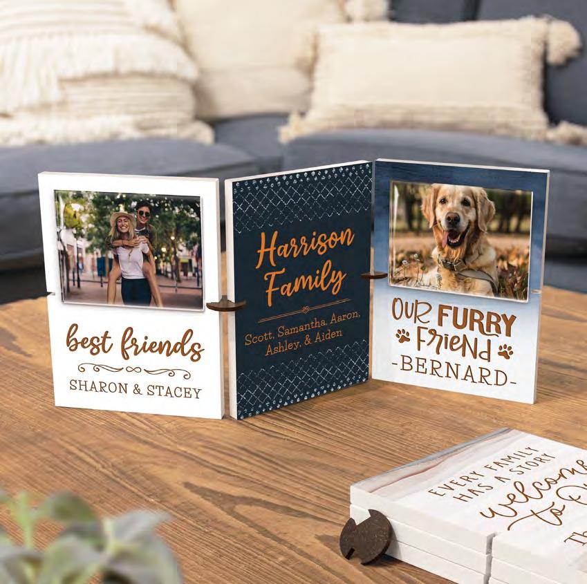 Tell your story by combining an endless assortment of photo frames and plaques! Uniquely engineered, each decorative board is connectable using an interlocking disc. Start with a single board, then collect and connect a lifetime of memories. Each board includes one disc that functions as an easel or connector piece.