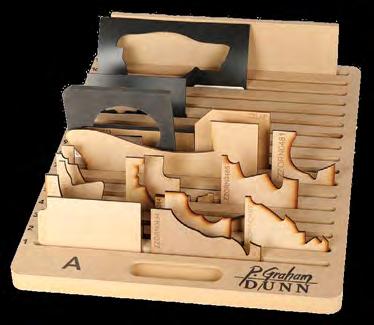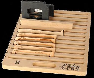 Three trays are each designed to fit different-sized jigs and easily slide in and out of your cabinet. Trays come with numbered rows to allow for easy cross-referencing with the digital workbook and GravoTouch software.