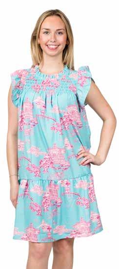 Sold in quantities of 2 by size | S, M, L = $34 each, XL = $36 each | Small (4-6), Medium (8-10), Large (12-14), Extra Large (14-16) | 100% Polyester | 53” L for size Medium | Elasticated smocking