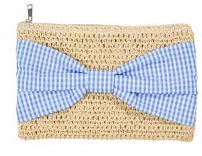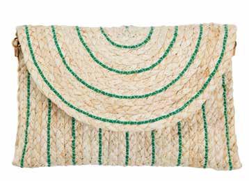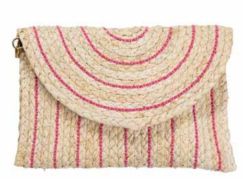 Sold in quantities of 3 | $28 each | 100% Paper Straw & Polyester | 6” H x 10.5” W x .5” D | Wristlet Strap