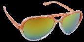 Gold metal frame with crystal blue patterned frame accents. Gradient brown lenses.