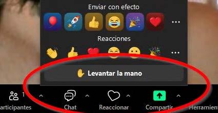 El alumno debe tener el audio cerrado durante la sesión. Para preguntar, el alumno debe, desde Zoom, levantar la mano y esperar a que el profesor le ceda el turno. Entonces abrirá el micro para realizar su consulta. Para levantar la mano en Zoom hay que pulsar en reaccionar y entonces aparece el botón correspondiente.