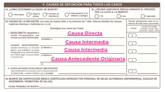 patológica que se reglón a) que muerte y que condición que ha o Directa.