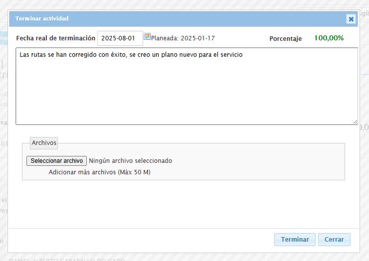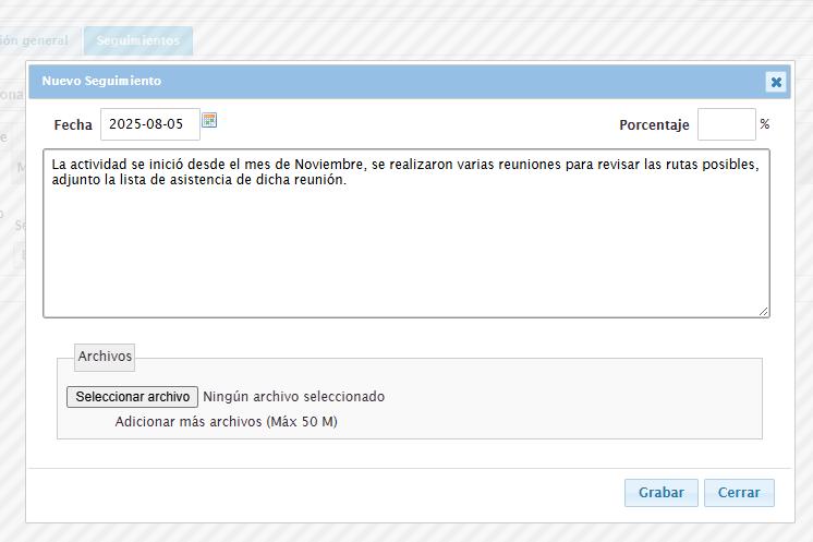 Recuerda que una actividad sin evidencia no puede darse por cerrada.