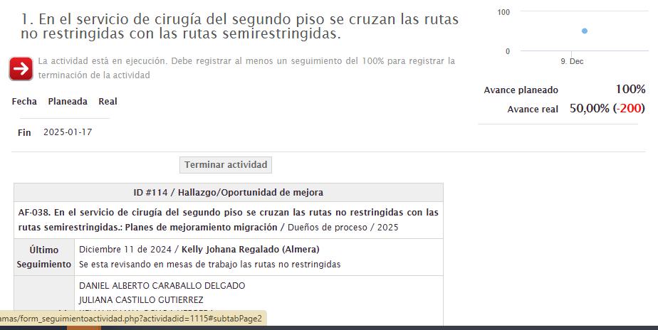 Desde el área de Calidad se realiza seguimiento a los planes de mejoramiento institucional con el fin de verificar que las acciones correctivas, preventivas o de mejora propuestas se estén ejecutando de manera oportuna, efectiva y sostenible, permitiendo así cerrar brechas identificadas y prevenir la recurrencia de no conformidades.