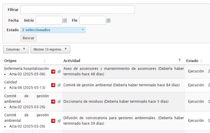 Allí se listan todas las actividades pendientes asignadas a tu cargo, incluyendo: