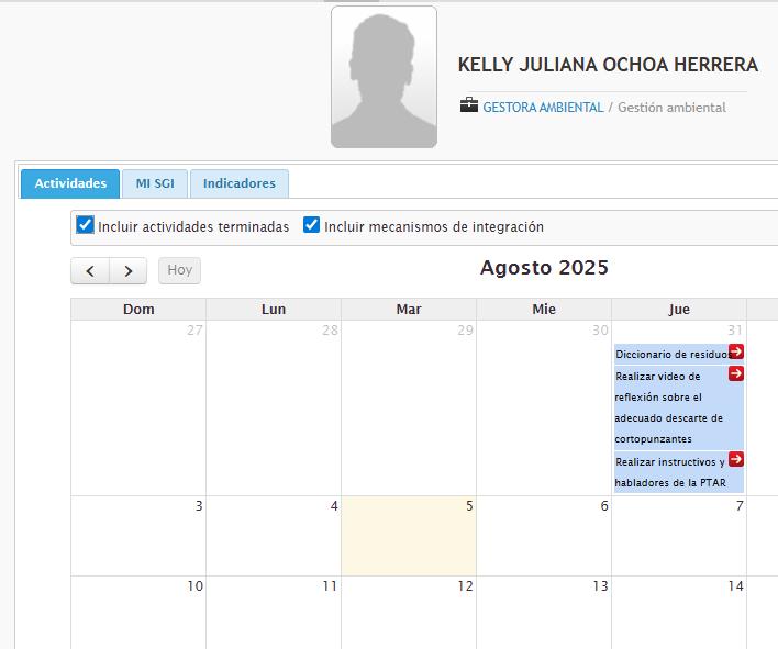 Allí aparecerán todas tus actividades pendientes, marcadas con los siguientes indicadores: